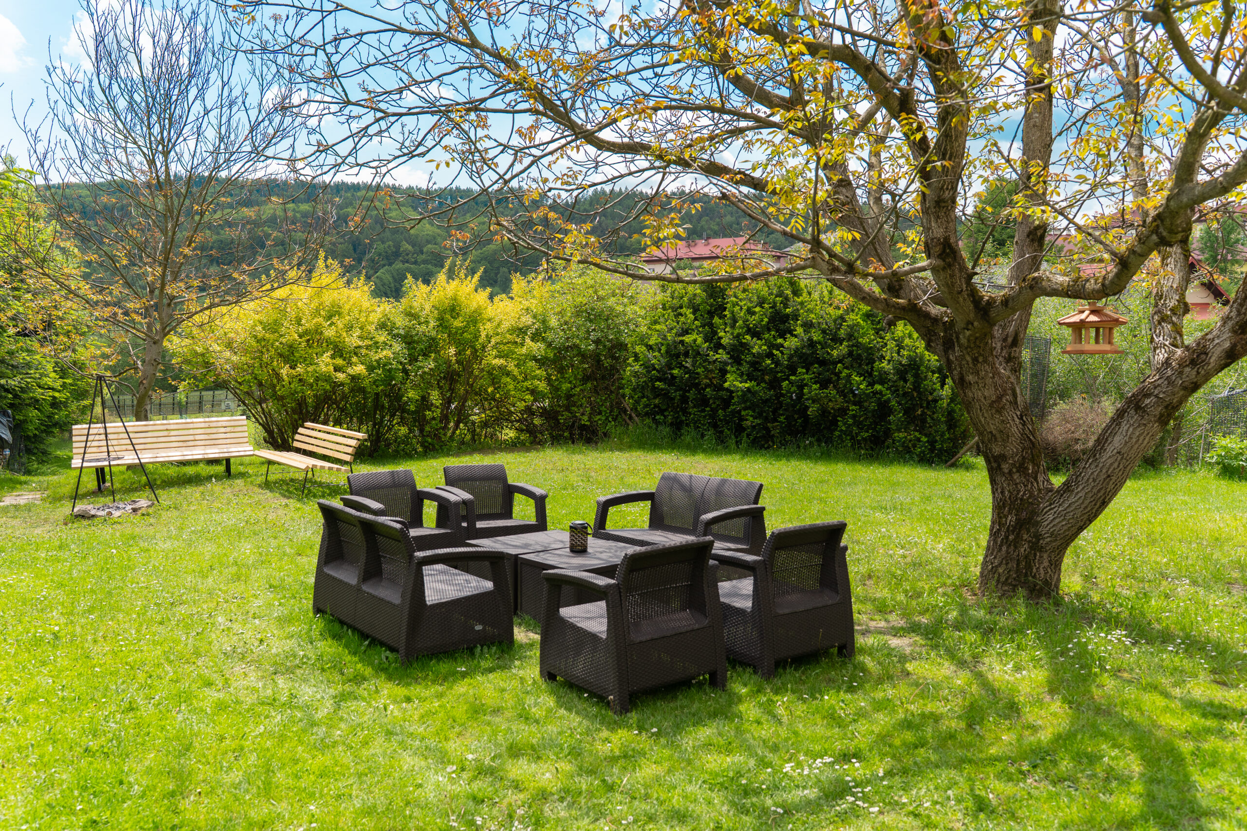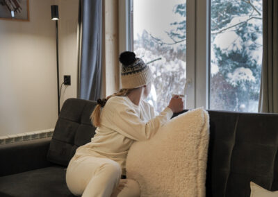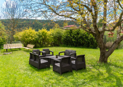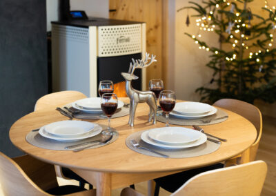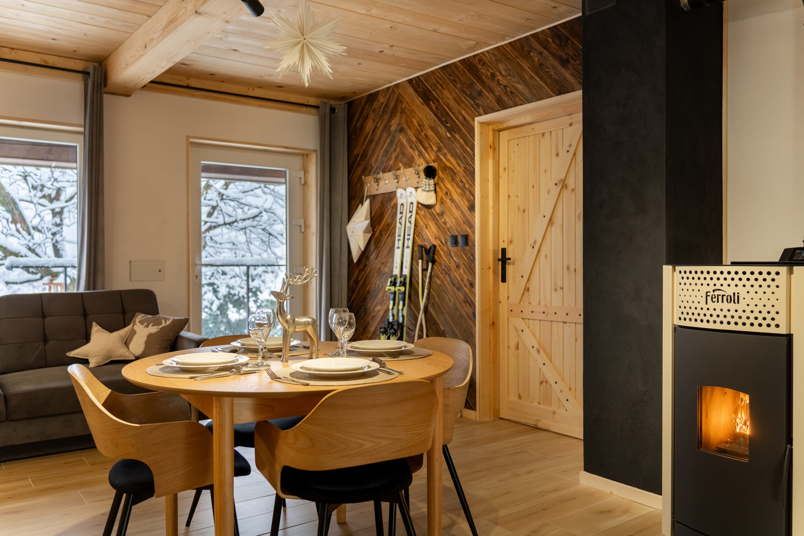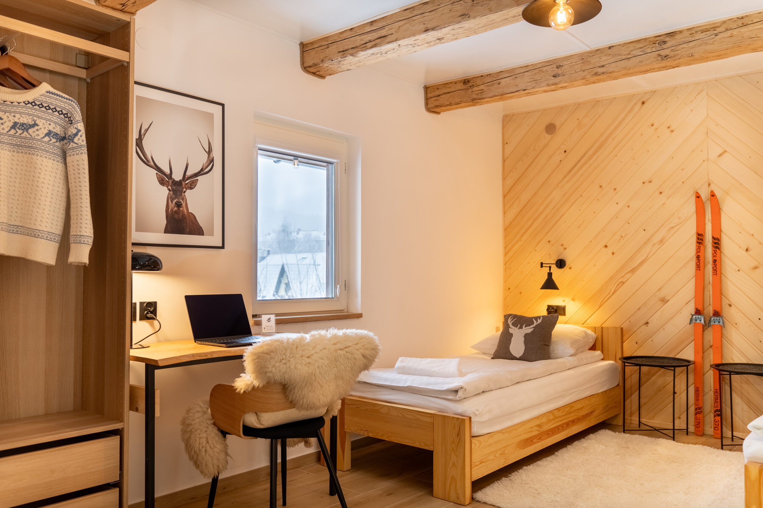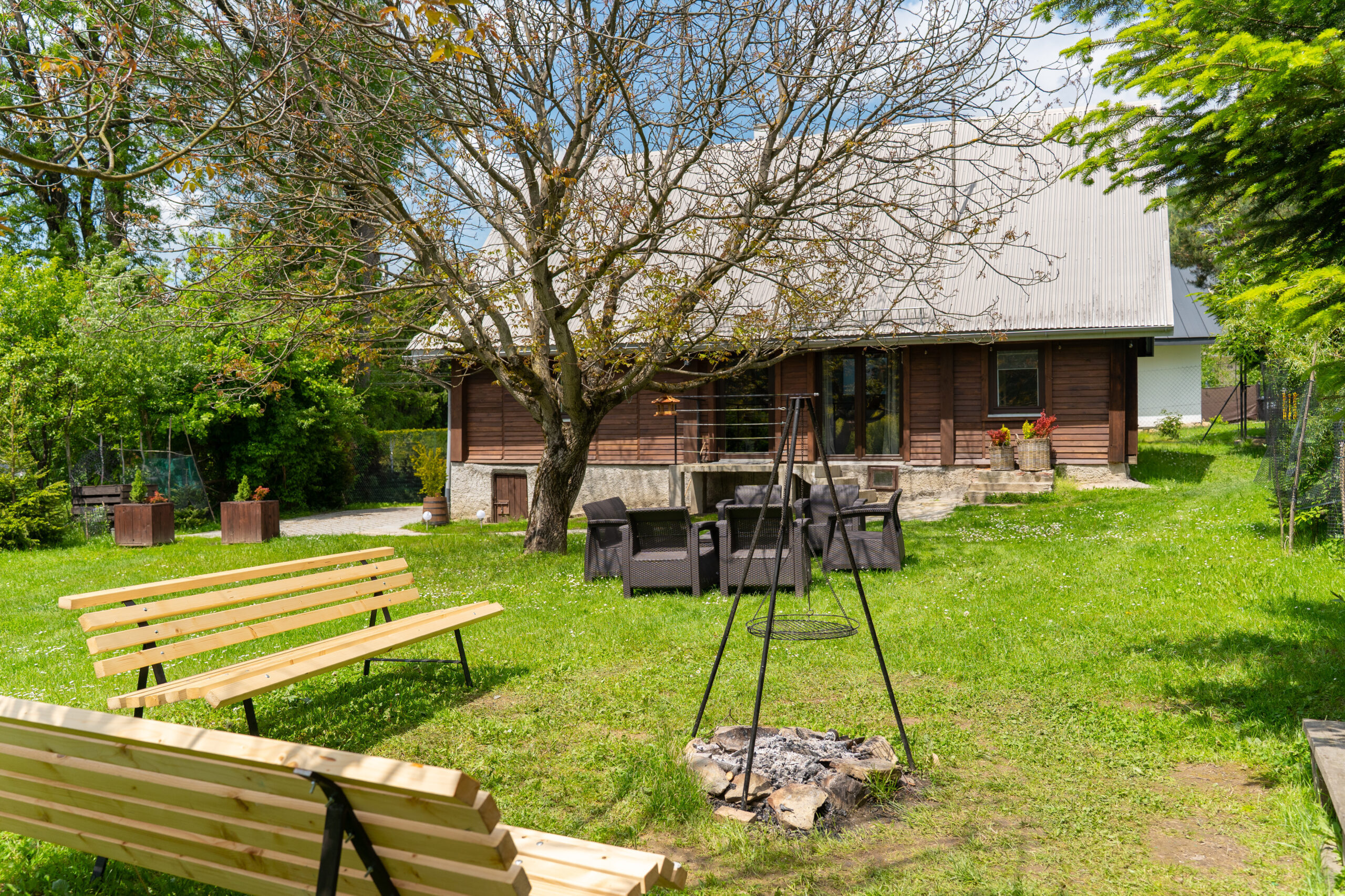 W Chacie do dyspozycji gości są 3 sypialnie 2-osobowe, salon z rozkładaną sofą, łazienka oraz aneks kuchenny z pełnym wyposażeniem (lodówka, zmywarka, zastawa stołowa, garnki, patelnie itd.) a także prywatny parking przy budynku. Chata wyposażona jest w duży telewizor z smart TV i WiFi. Istnieje możliwość dostawienia łóżeczka niemowlęcego. Zapewniamy pościel oraz ręczniki.